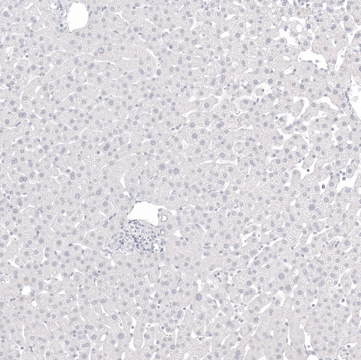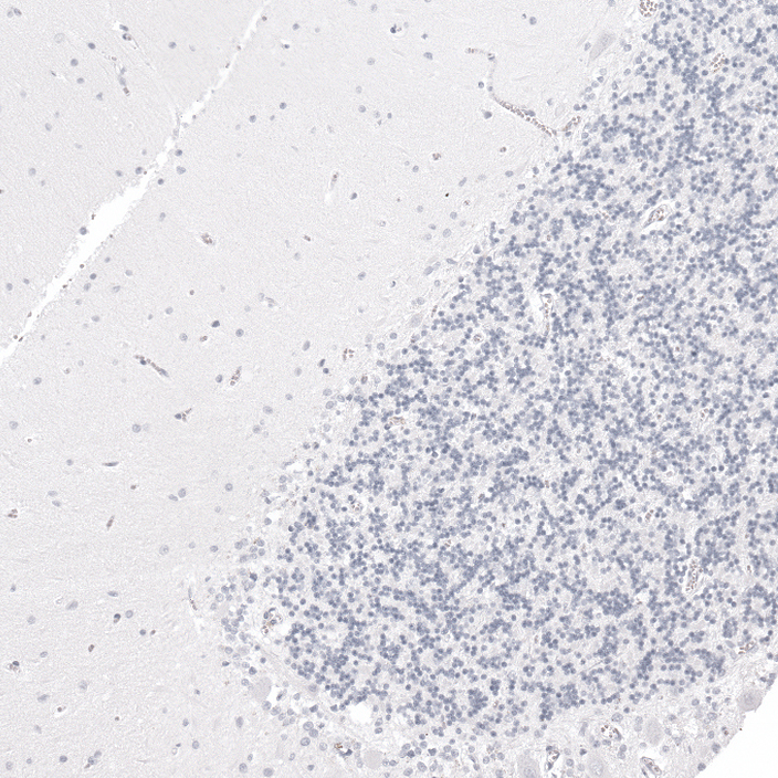 Immunohistochemical staining of human skeletal muscle shows no positivity in myocytes as expected.
