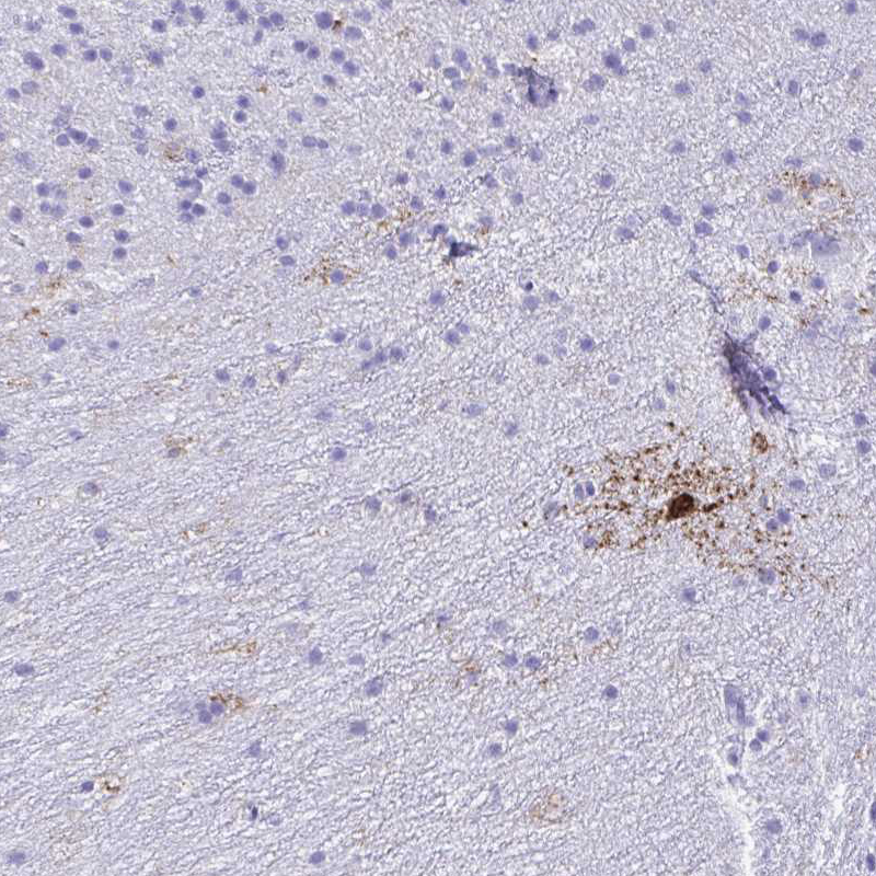 Immunohistochemistry analysis in human cerebral cortex and liver tissues using HPA029766 antibody. Corresponding GPR17 RNA-seq data are presented for the same tissues.