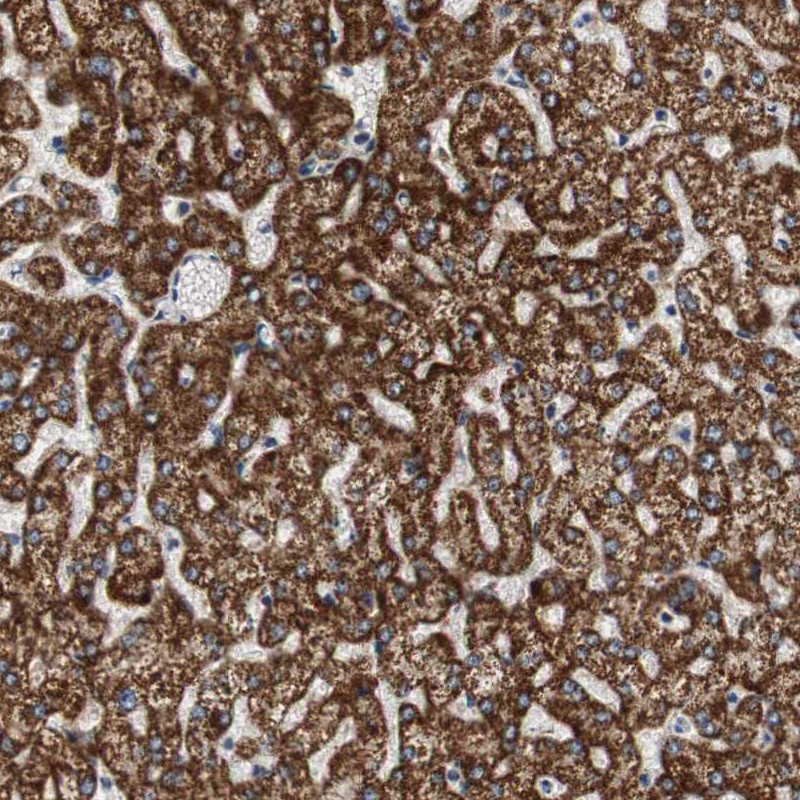Immunohistochemistry analysis in human liver and skin tissues using Anti-HMGCL antibody. Corresponding HMGCL RNA-seq data are presented for the same tissues.