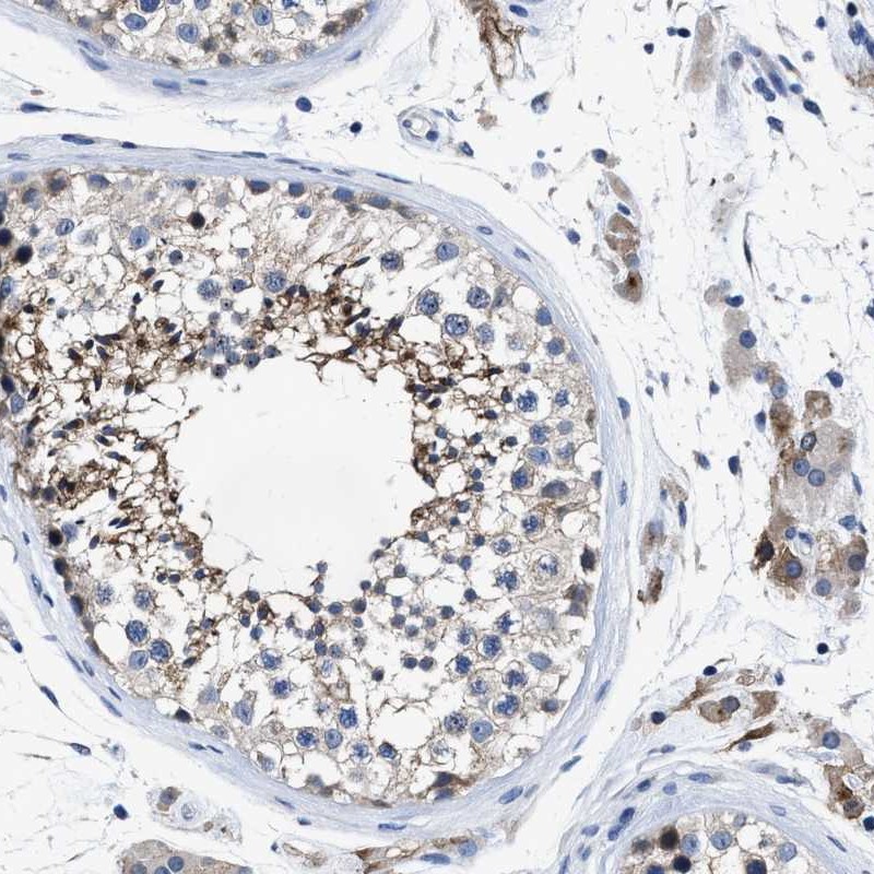Immunohistochemistry analysis in human testis and endometrium tissues using Anti-HOOK1 antibody. Corresponding HOOK1 RNA-seq data are presented for the same tissues.