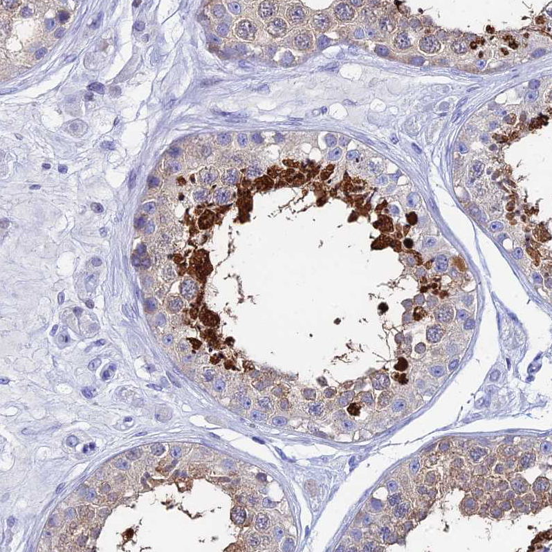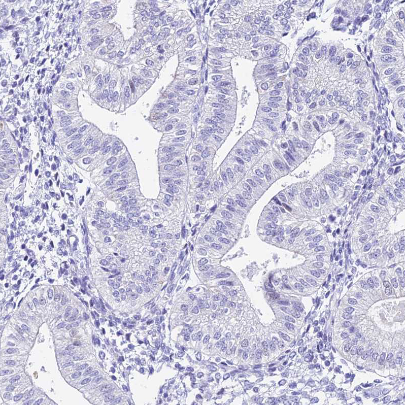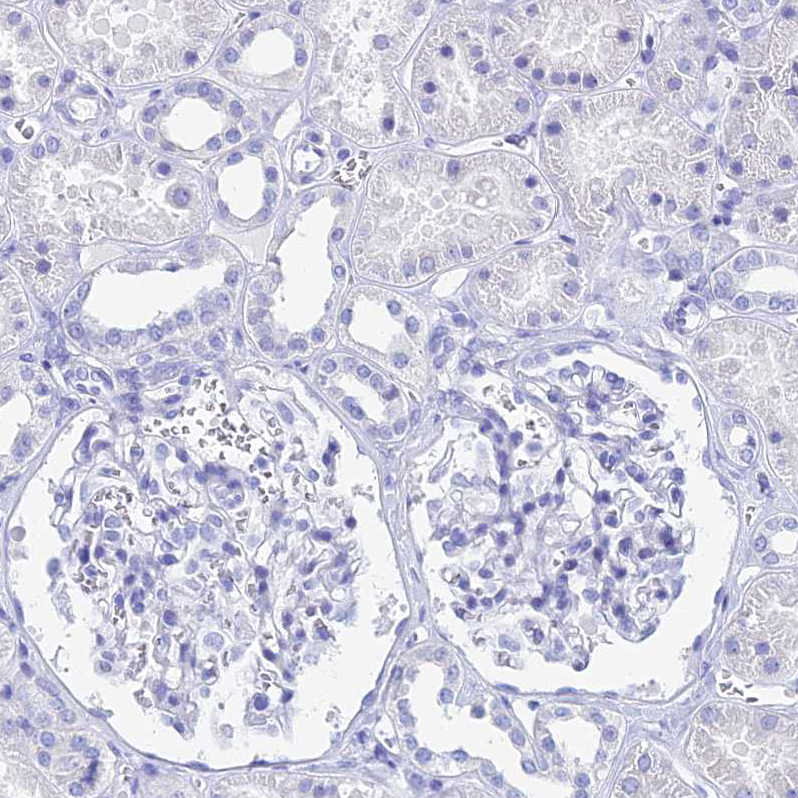 Immunohistochemical staining of human prostate shows no positivity in glandular cells as expected.