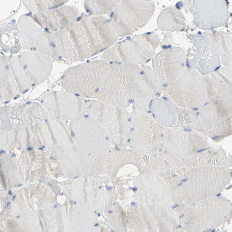 Immunohistochemical staining of human cerebral cortex shows moderate cytoplasmic positivity in neuropil.