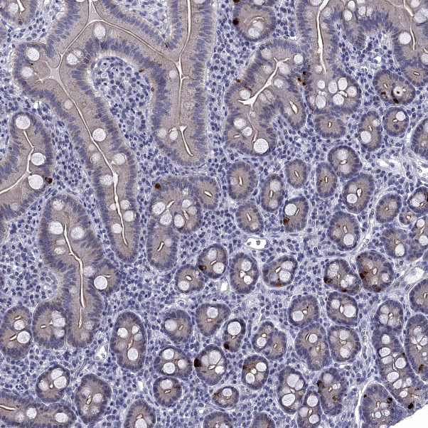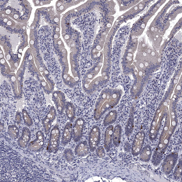 Immunohistochemistry analysis in human small intestine and liver tissues using HPA040591 antibody. Corresponding HTR4 RNA-seq data are presented for the same tissues.