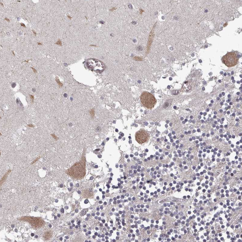 Immunohistochemical staining of human testis shows moderate Cytoplasmic-membranous positivity in cells in seminiferous ducts.