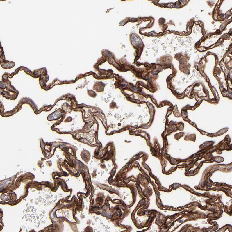 Immunohistochemistry analysis in human lung and skeletal muscle tissues using HPA002126 antibody. Corresponding ICAM1 RNA-seq data are presented for the same tissues.