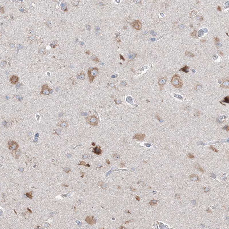 Immunohistochemical staining of human small intestine shows strong cytoplasmic positivity in lymphoid cells.