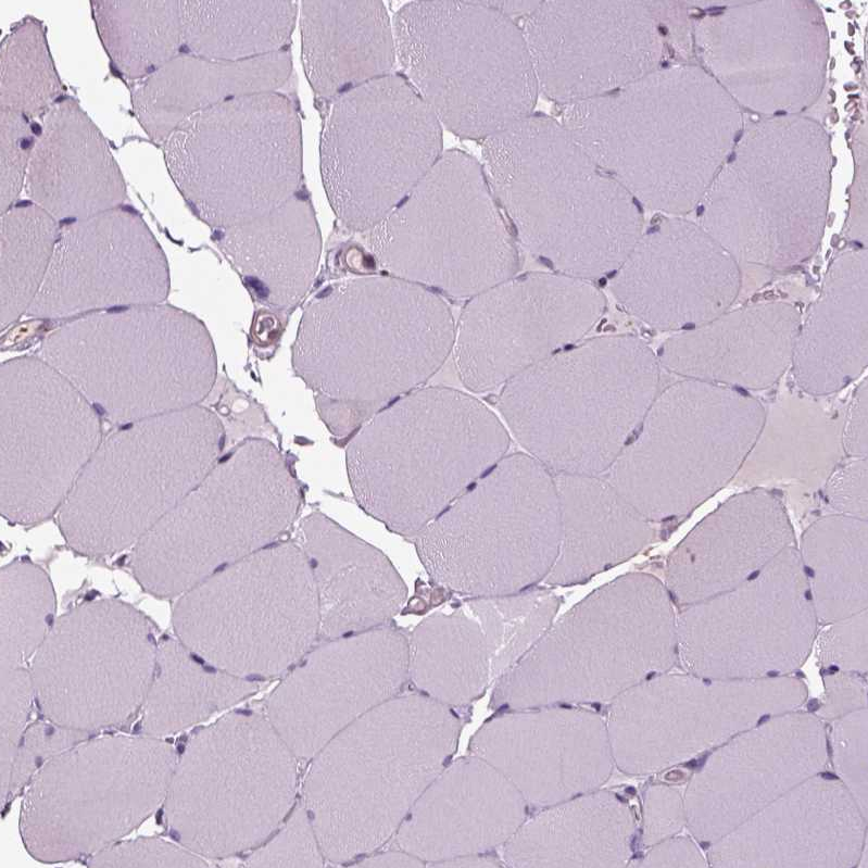 Immunohistochemical staining of human testis shows weak cytoplasmic positivity in cells in seminiferous ducts.
