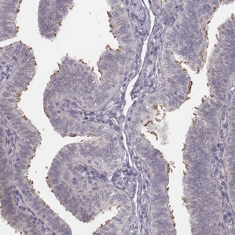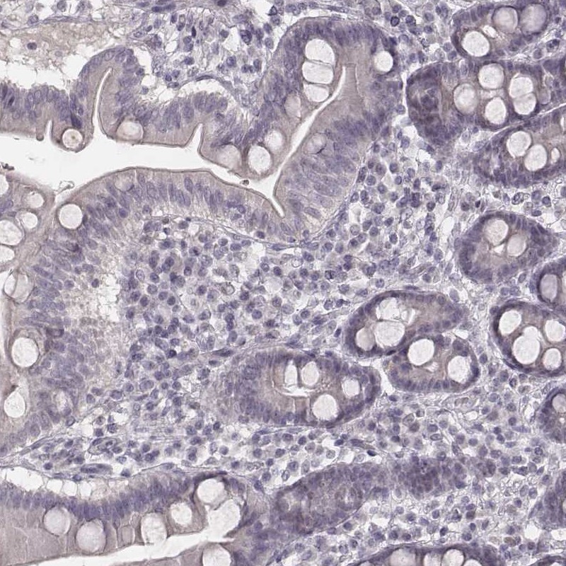 Immunohistochemistry analysis in human fallopian tube and duodenum tissues using Anti-IQCG antibody. Corresponding IQCG RNA-seq data are presented for the same tissues.