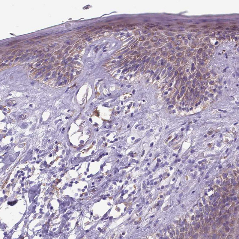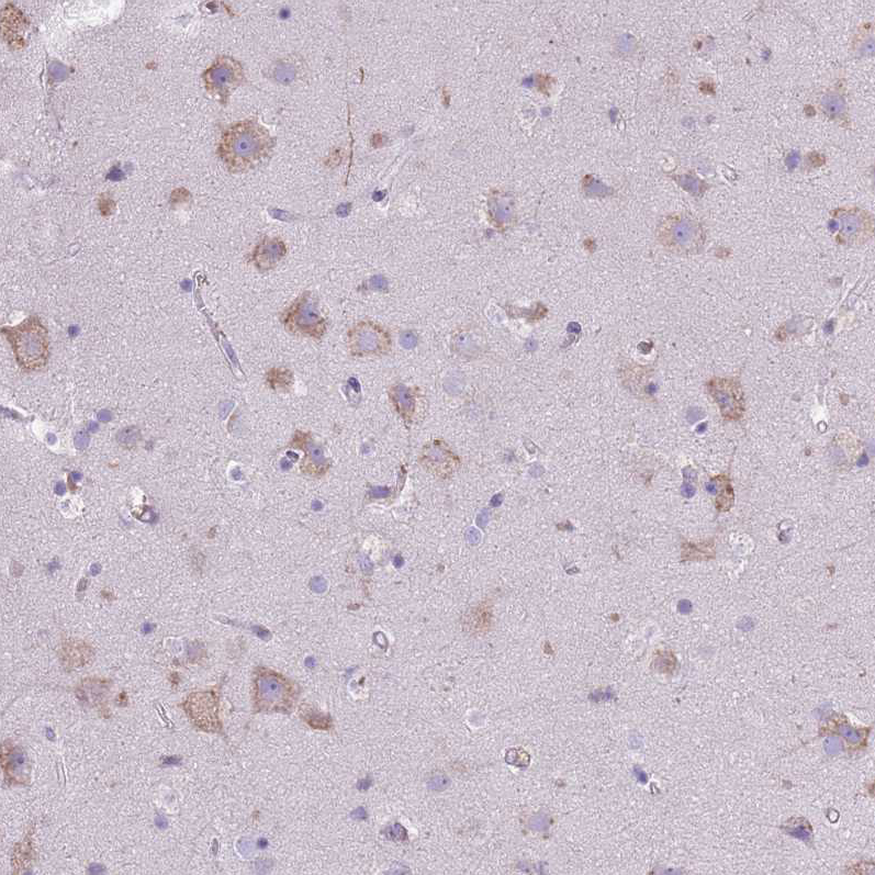Immunohistochemical staining of human testis shows strong cytoplasmic positivity in Leydig cells.