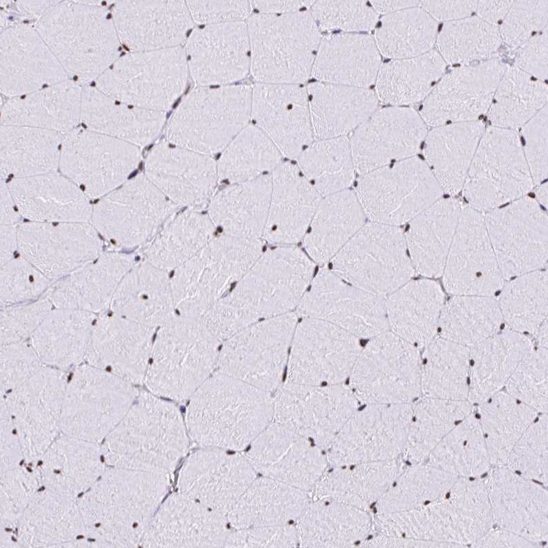 Immunohistochemistry analysis in human endometrium and skeletal muscle tissues using Anti-KHDRBS1 antibody. Corresponding KHDRBS1 RNA-seq data are presented for the same tissues.