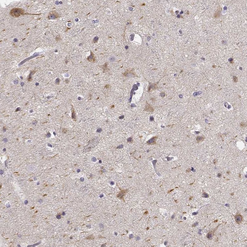 Immunohistochemistry analysis in human cerebral cortex and duodenum tissues using Anti-KIAA0319 antibody. Corresponding KIAA0319 RNA-seq data are presented for the same tissues.