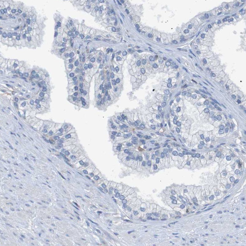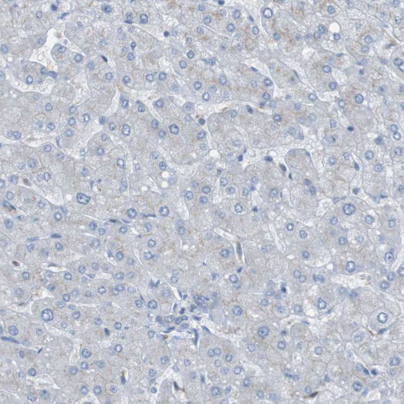 Immunohistochemical staining of human adrenal gland shows moderate membranous positivity in glandular cells.