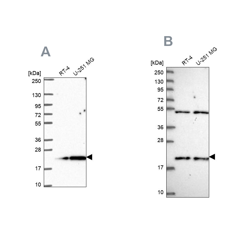 Western blot analysis in U2OS cells transfected with control siRNA, target specific siRNA probe #1 and #2, using Anti-KIAA1143 antibody. Remaining relative intensity is presented. Loading control: Anti-GAPDH.