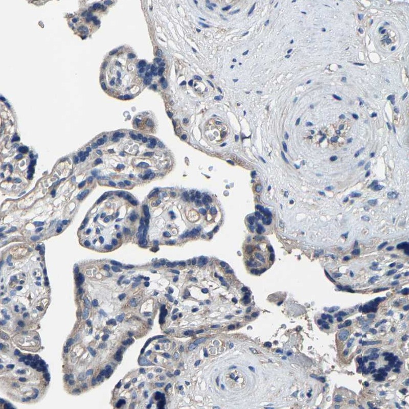 Immunohistochemistry analysis in human kidney and placenta tissues using Anti-KIAA1958 antibody. Corresponding KIAA1958 RNA-seq data are presented for the same tissues.