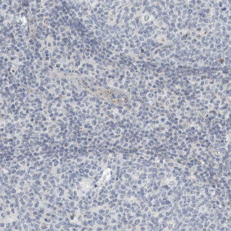 Immunohistochemical staining of human heart muscle shows strong cytoplasmic positivity in cardiomyocytes.