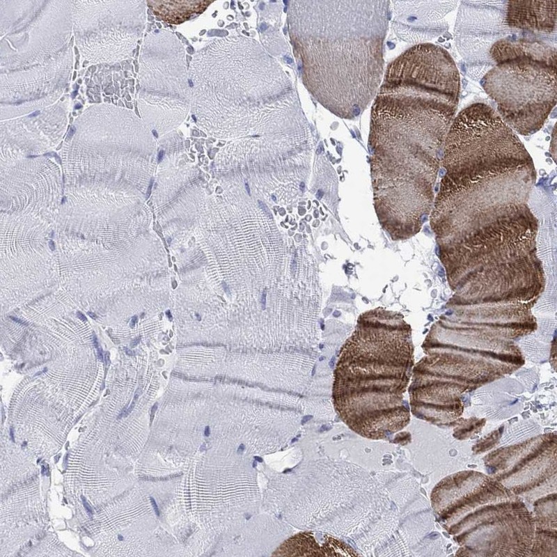 Immunohistochemistry analysis in human skeletal muscle and pancreas tissues using Anti-KLHL33 antibody. Corresponding KLHL33 RNA-seq data are presented for the same tissues.