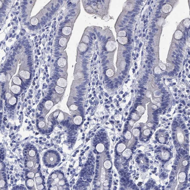Immunohistochemistry analysis in human testis and duodenum tissues using Anti-KLHL35 antibody. Corresponding KLHL35 RNA-seq data are presented for the same tissues.