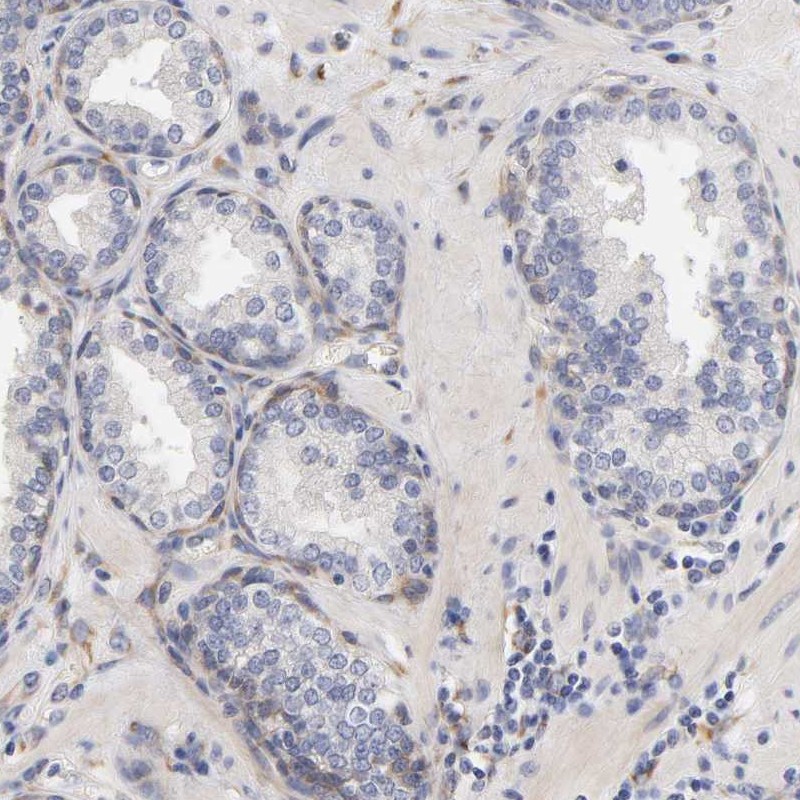 Immunohistochemistry analysis in human placenta and prostate tissues using Anti-LAMB1 antibody. Corresponding LAMB1 RNA-seq data are presented for the same tissues.
