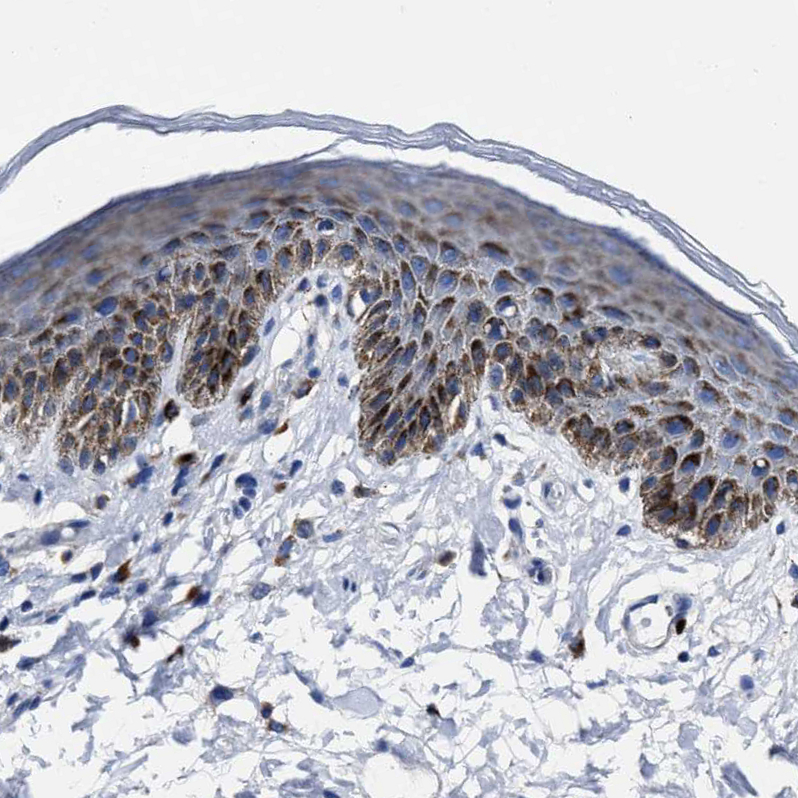 Immunohistochemistry analysis in human skin and liver tissues using HPA020998 antibody. Corresponding LAMTOR4 RNA-seq data are presented for the same tissues.