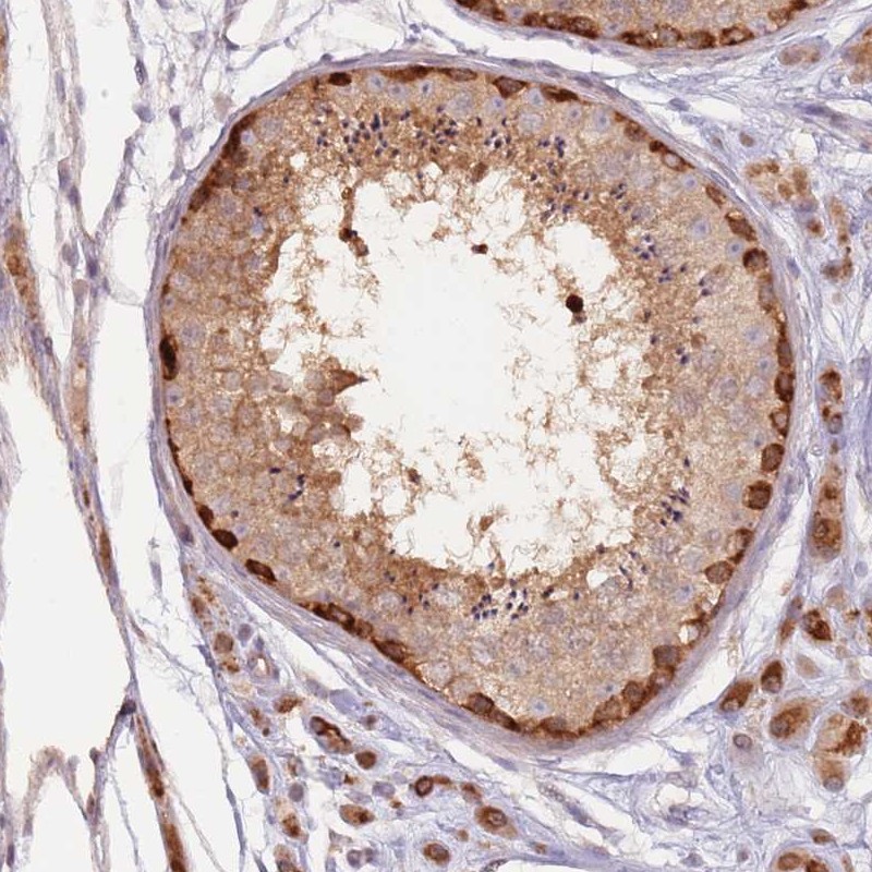 Immunohistochemistry analysis in human kidney and testis tissues using Anti-LDHD antibody. Corresponding LDHD RNA-seq data are presented for the same tissues.