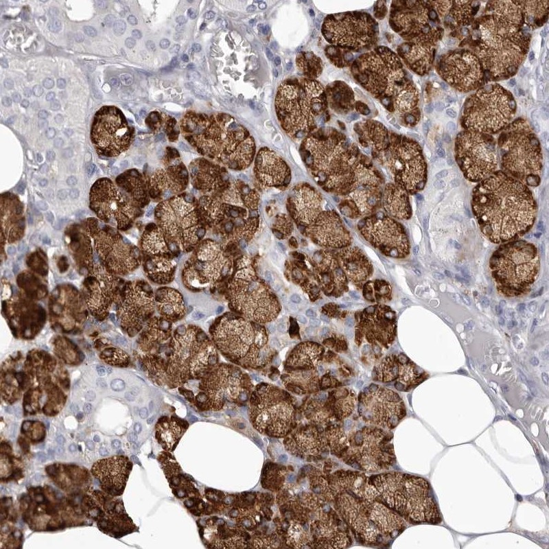 Immunohistochemistry analysis in human salivary gland and colon tissues using Anti-LPO antibody. Corresponding LPO RNA-seq data are presented for the same tissues.
