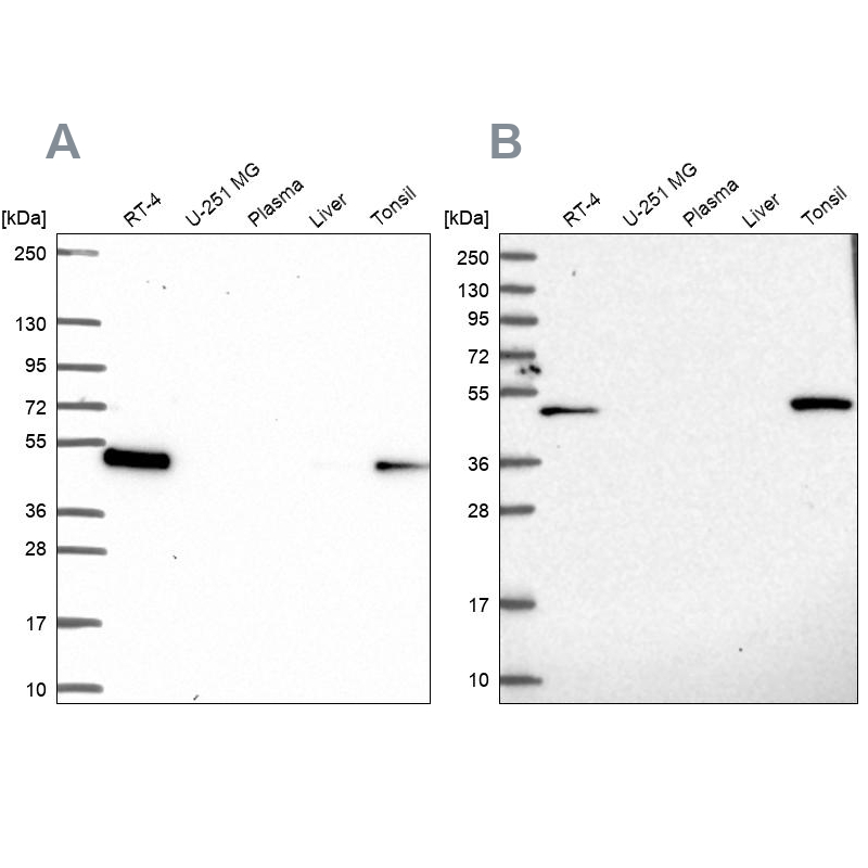 Western blot analysis in human cell lines PC-3 and Caco-2 using Anti-LPXN antibody. Corresponding LPXN RNA-seq data are presented for the same cell lines. Loading control: Anti-COX4I1.