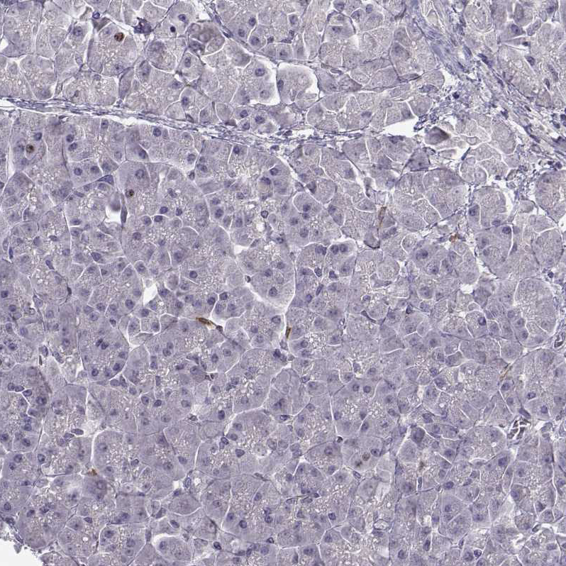 Immunohistochemical staining of human testis shows strong membranous positivity in cells in seminiferous ducts.