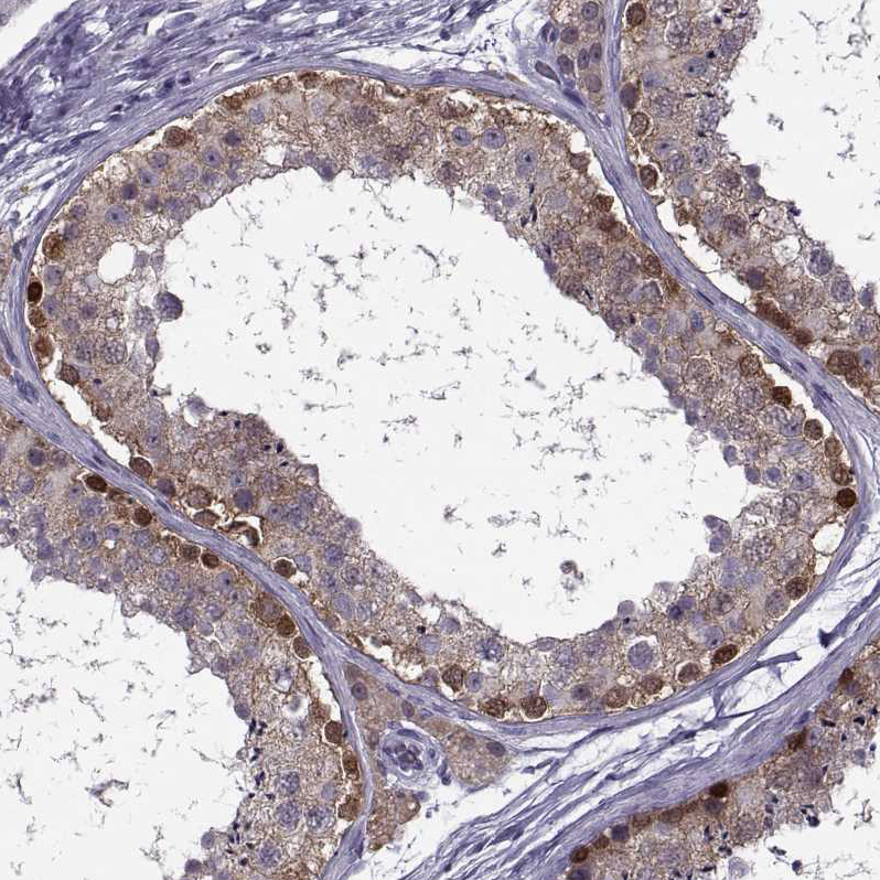Immunohistochemistry analysis in human testis and endometrium tissues using HPA001193 antibody. Corresponding MAGEB1 RNA-seq data are presented for the same tissues.