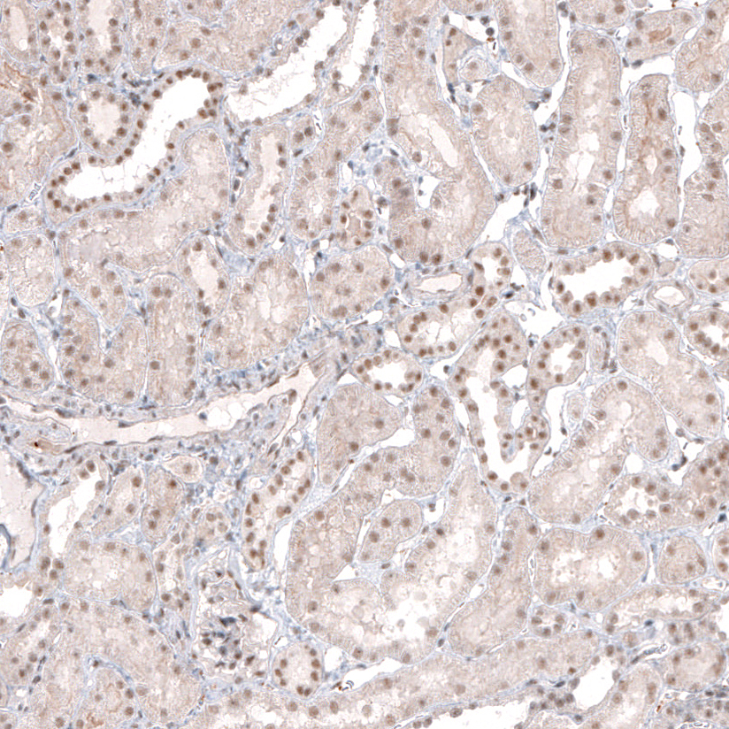 Immunohistochemical staining of human endometrium shows moderate nuclear positivity.