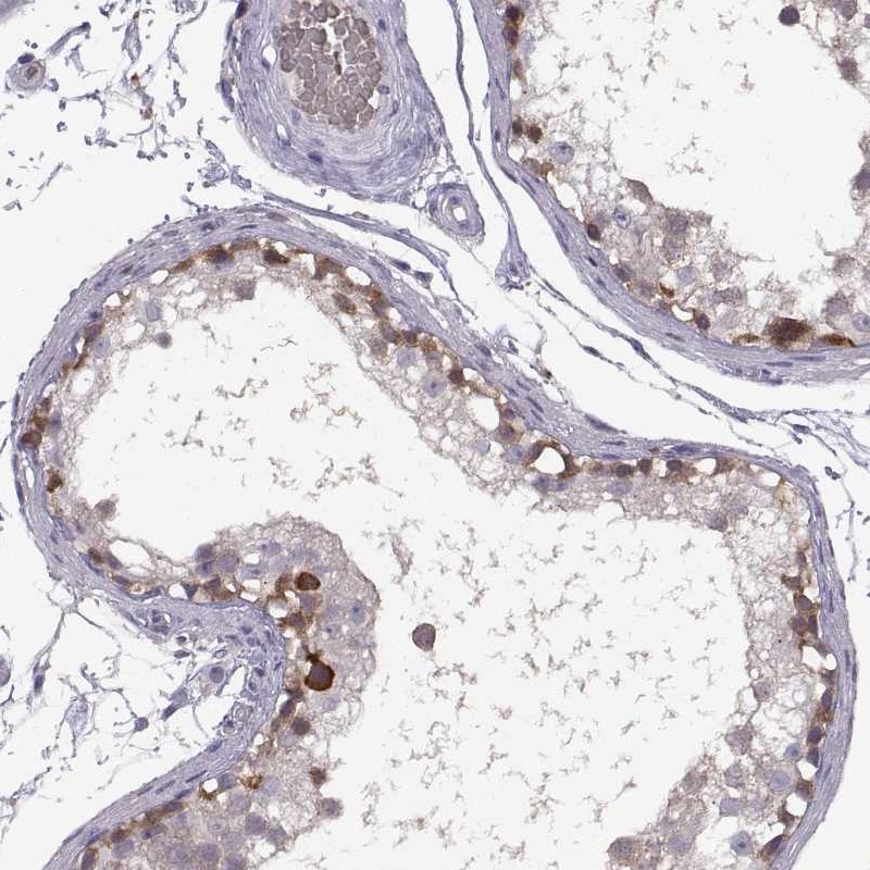 Immunohistochemistry analysis in human testis and prostate tissues using Anti-MEIOC antibody. Corresponding MEIOC RNA-seq data are presented for the same tissues.