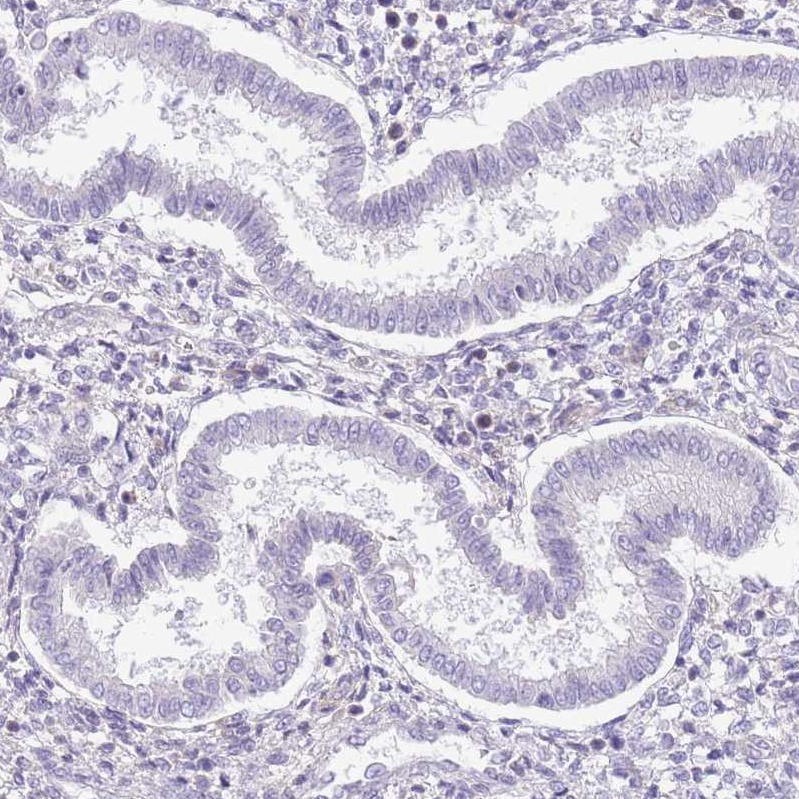 Immunohistochemical staining of human stomach shows strong cytoplasmic-membranous positivity in glandular cells.