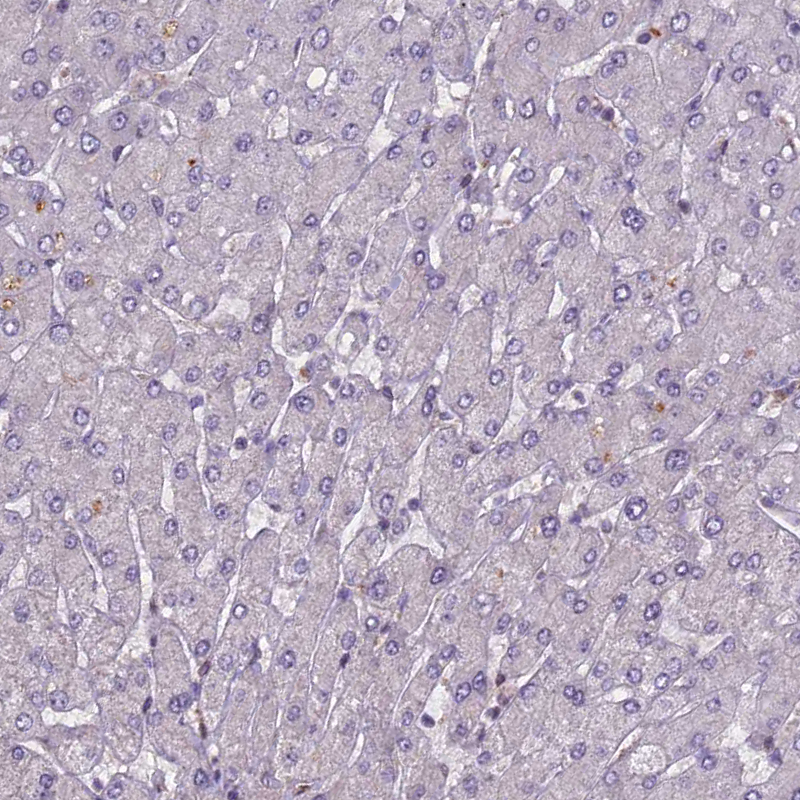 Immunohistochemical staining of human skin shows moderate cytoplasmic positivity in epidermal cells.