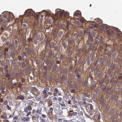 Immunohistochemical staining of human colon, kidney, testis and urinary bladder using Anti-MKKS antibody HPA041071 (A) shows similar protein distribution across tissues to independent antibody HPA044233 (B).