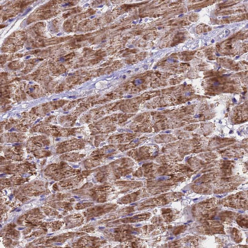 Immunohistochemical staining of human liver shows moderate granular cytoplasmic positivity in hepatocytes.