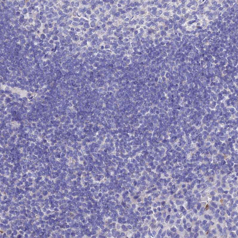 Immunohistochemical staining of human testis shows moderate membranous and cytoplasmic positivity in cells in tubules.