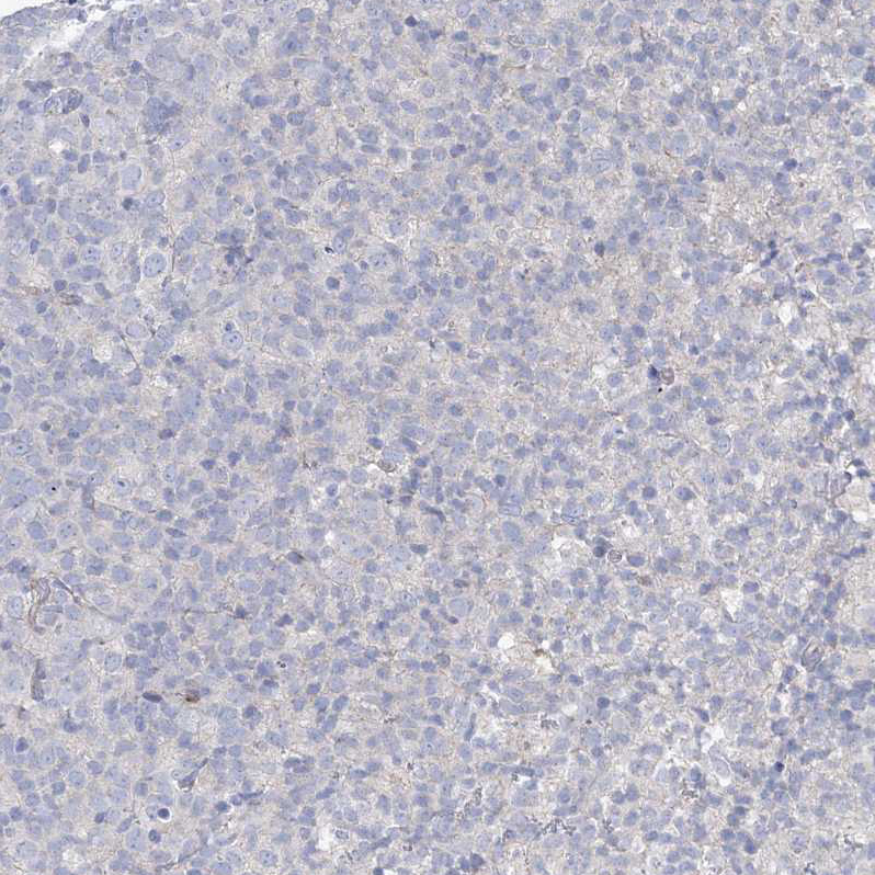 Immunohistochemical staining of human testis shows moderate cytoplasmic positivity in Leydig cells.