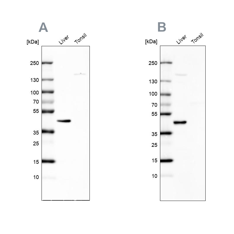Immunohistochemistry analysis in human liver and skeletal muscle tissues using Anti-NADK2 antibody. Corresponding NADK2 RNA-seq data are presented for the same tissues.