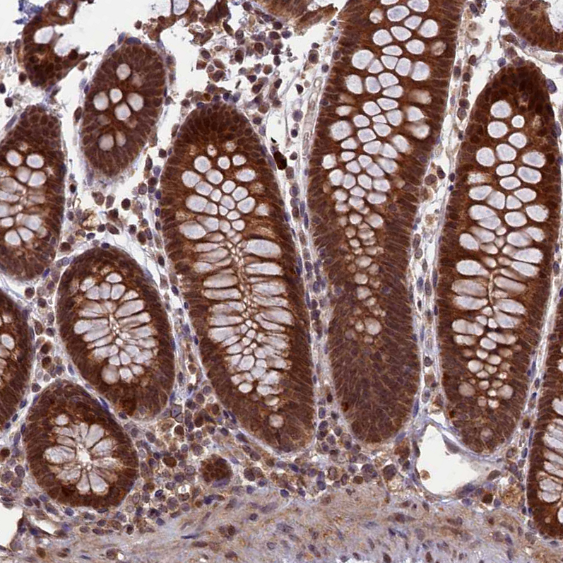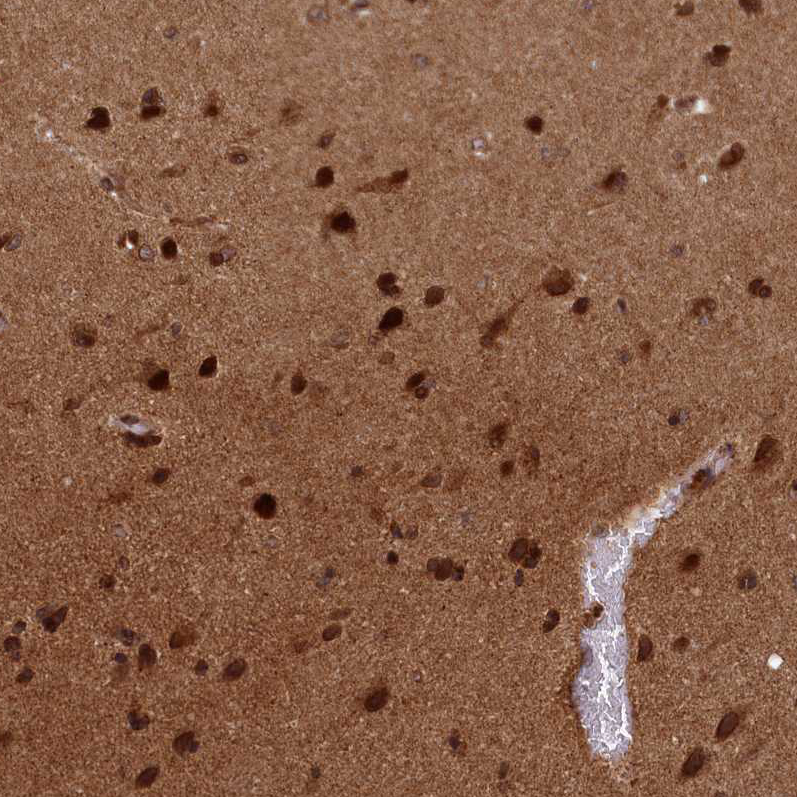 Immunohistochemical staining of human cerebral cortex, colon, prostate and testis using Anti-NAE1 antibody HPA042041 (A) shows similar protein distribution across tissues to independent antibody HPA041178 (B).