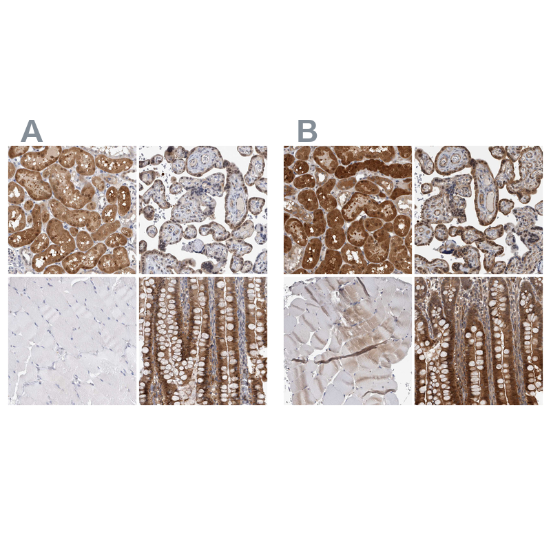 Immunohistochemistry analysis in human small intestine and skeletal muscle tissues using HPA024017 antibody. Corresponding NAPRT RNA-seq data are presented for the same tissues.