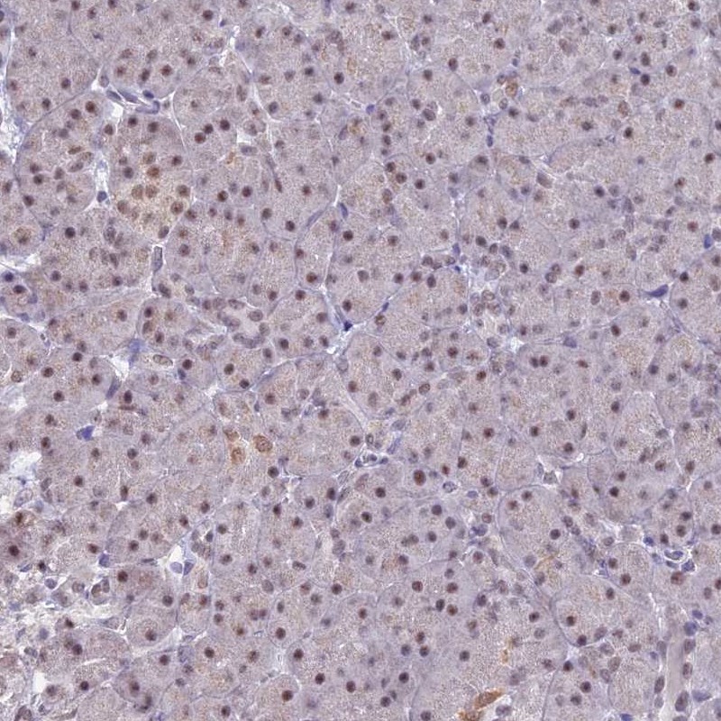 Immunohistochemistry analysis in human testis and pancreas tissues using Anti-NCBP1 antibody. Corresponding NCBP1 RNA-seq data are presented for the same tissues.
