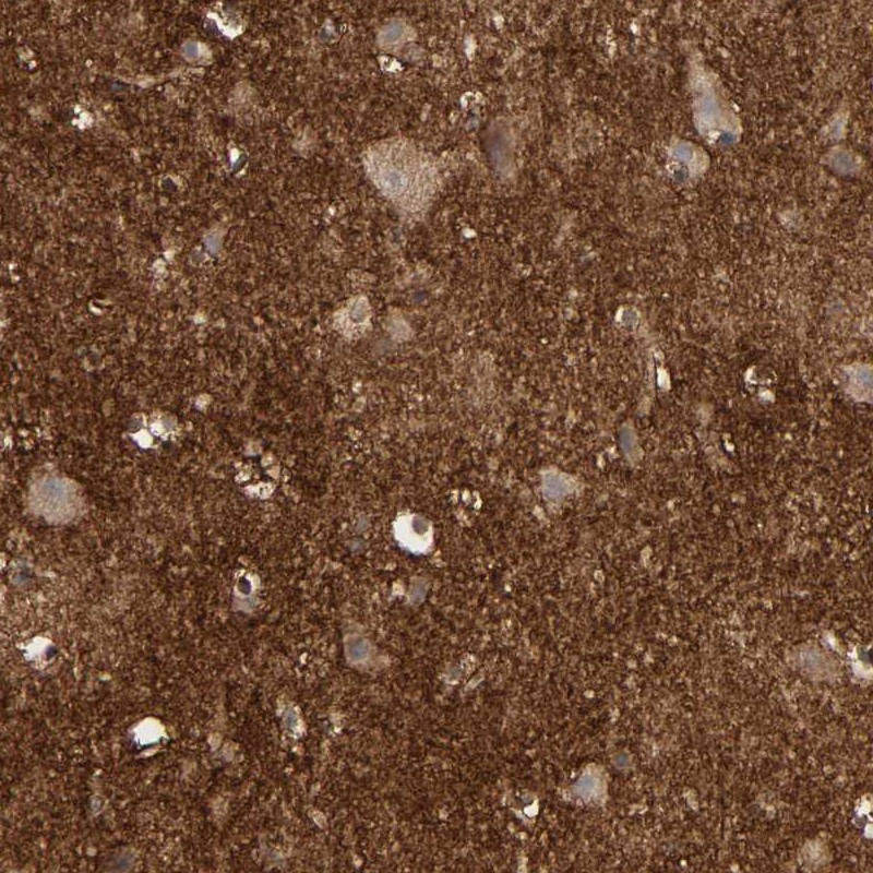 Immunohistochemistry analysis in human cerebral cortex and pancreas tissues using Anti-NDRG2 antibody. Corresponding NDRG2 RNA-seq data are presented for the same tissues.