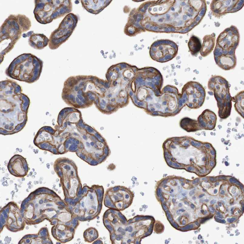 Immunohistochemistry analysis in human placenta and cerebral cortex tissues using HPA012759 antibody. Corresponding NECTIN2 RNA-seq data are presented for the same tissues.