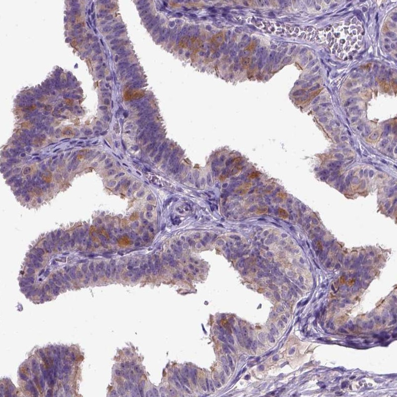 Immunohistochemistry analysis in human fallopian tube and prostate tissues using Anti-NEK5 antibody. Corresponding NEK5 RNA-seq data are presented for the same tissues.