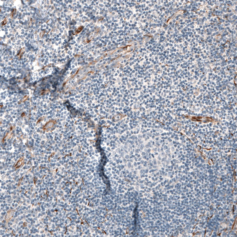 Immunohistochemical staining of human duodenum shows strong cytoplasmic positivity in a subset of cells in the peripheral ganglion.