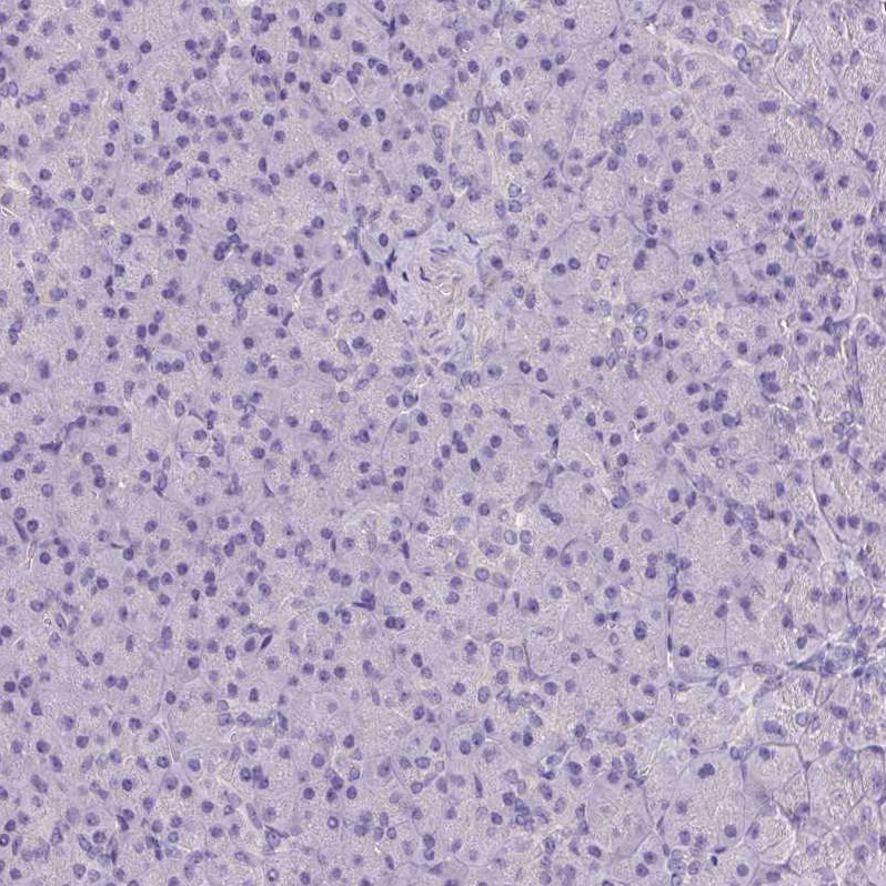 Immunohistochemical staining of human cerebellum shows strong cytoplasmic positivity in cells in granular layer.