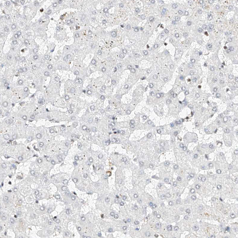 Immunohistochemical staining of human placenta shows strong nuclear positivity in trophoblastic cells.