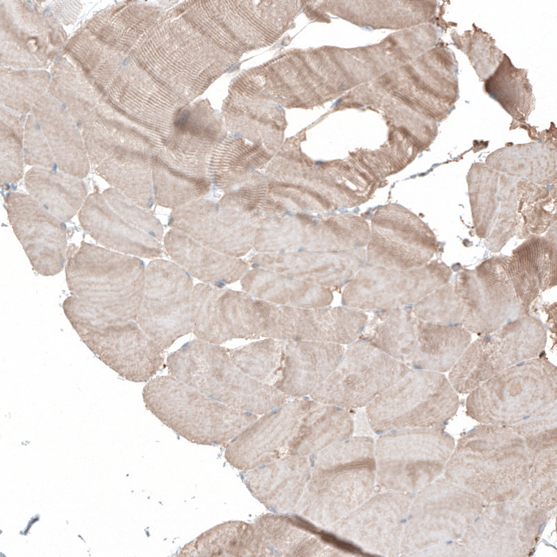 Immunohistochemical staining of human smooth muscle shows moderate positivity.
