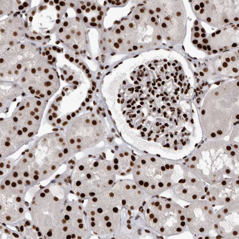 Immunohistochemical staining of human fallopian tube, gastrointestinal, kidney and lymphoid tissues using Anti-NUMA1 antibody HPA029912 (A) shows similar protein distribution across tissues to independent antibody HPA019841 (B).