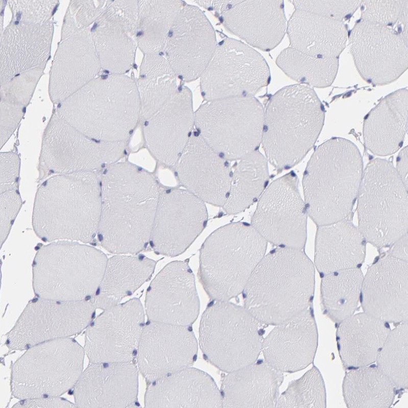 Immunohistochemistry analysis in human testis and skeletal muscle tissues using Anti-OTUB2 antibody. Corresponding OTUB2 RNA-seq data are presented for the same tissues.