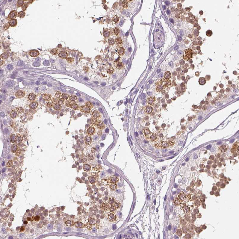 Immunohistochemistry analysis in human testis and liver tissues using HPA053304 antibody. Corresponding OTUD6A RNA-seq data are presented for the same tissues.